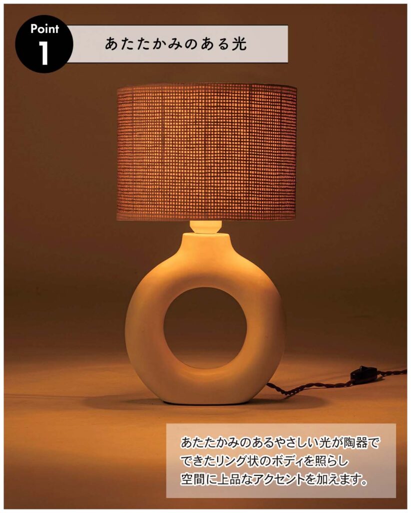 ページ素材追加 LHT-759WH 2026.02.18 ページ素材追加 【商品詳細情報】 サイズ:φ25×H42.5cm (コード長:1.5m) 材質:陶器 布 紙 アルミ 品番品名色画像素材の掲載ページLHT-759WHテーブルライトホワイト掲載ページはこちら※オンラインカタログショップにログインをしていただくと画像データのダウンロードが可能となります。 WEBページ素材DLはこちらから