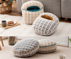 包み込まれるような心地よさのフットインクッションと、やわらかなフォルムが魅力のラウンドクッション。 インテリアになじむナチュラルなデザインで、ふかふかの感触がくつろぎの時間をより心地よくしてくれます。