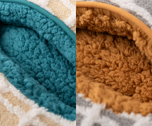 内側はふんわりボア素材で、足を入れると優しく包み込まれる感覚。 手触りのよさとあたたかさを両立し、リラックス効果も抜群です。 内側のカラーがさりげない差し色もポイントです。